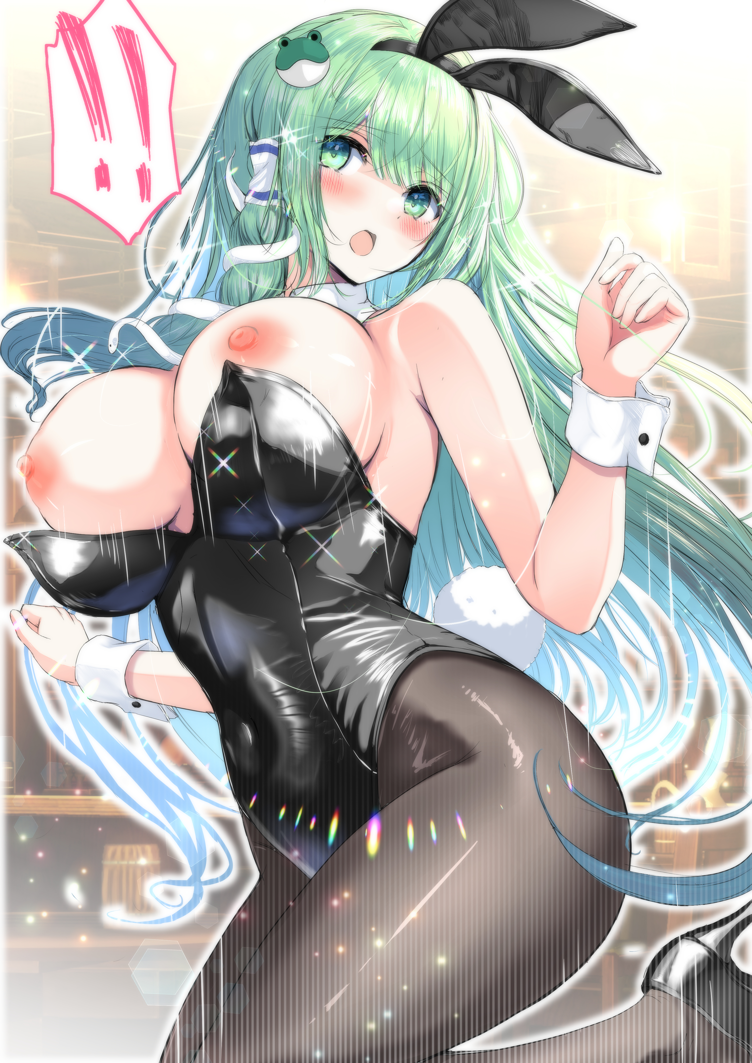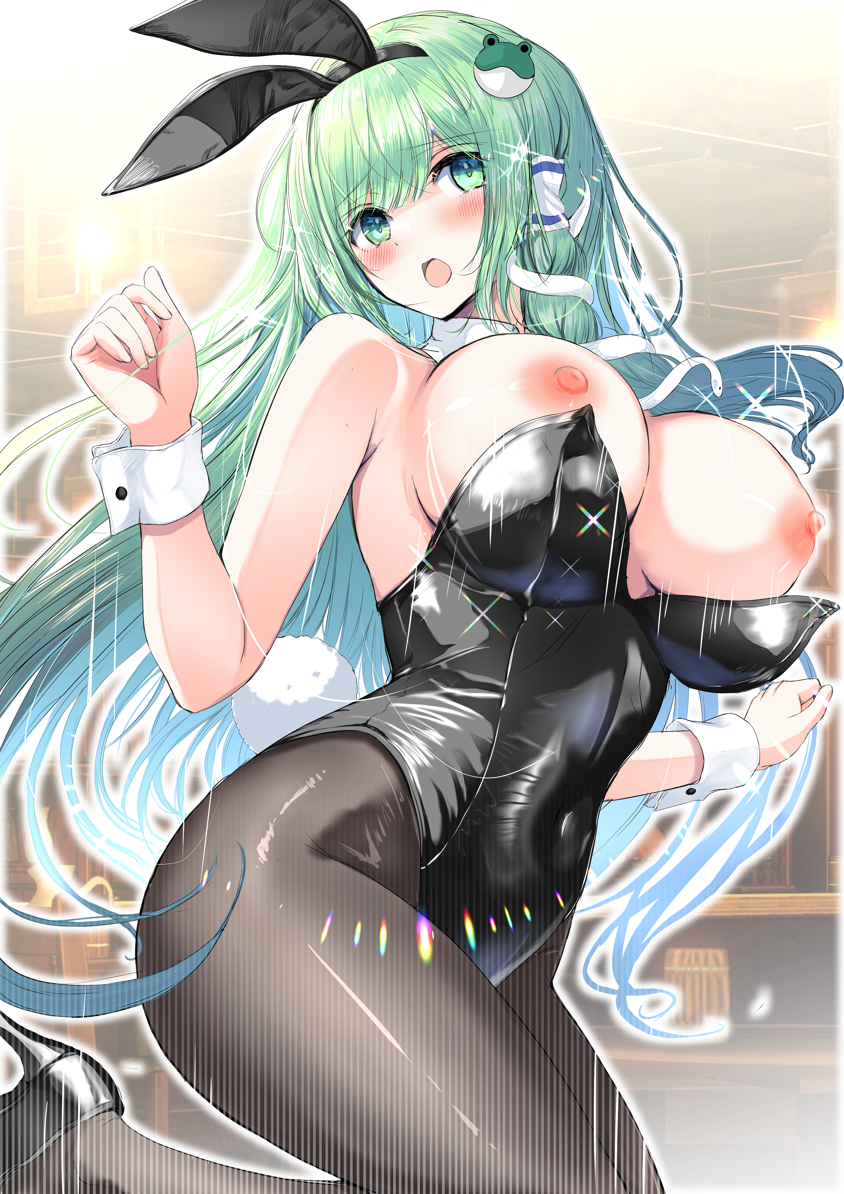 ぴょんぴょん跳ねたら胸が激しく揺れて、ポロリしてしまうバニーガール早苗さん🐇です!!
